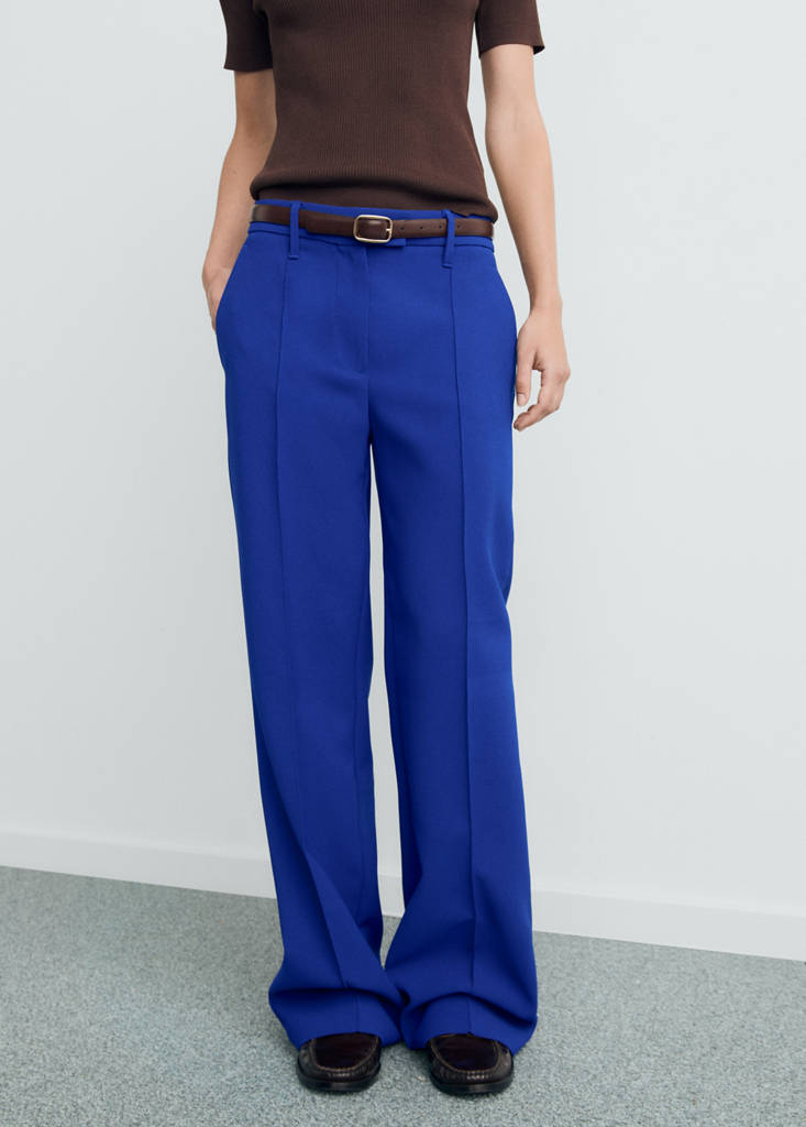 Calças retas com cintura médiaPreço atual [39,99 € ]39,99 €Selecione uma corAzulA modelo veste o tamanho 36 e mede 178cm.Selecione o seu tamanho32Não disponível. Quero!34Não disponível. Quero!36Não disponível. Quero!38Não disponível. Quero!40Não disponível. Quero!42Não disponível. Quero!44Não disponível. Quero!MedidasAvisem-meAdicionar a PreferidosVer lookEnvio gratuito para a lojaDesign longo. Design reto. Cintura média. Passantes para cinto. Fecho de botão oculto, gancho e fecho de correr. Forro interiorPormenores, composição e cuidados a terDisponibilidade em lojaMango StylistPergunte sobre envios, devoluções e muito maisAssistant