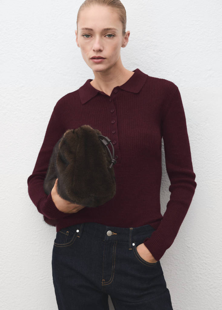 Camisola canelada com gola de polo