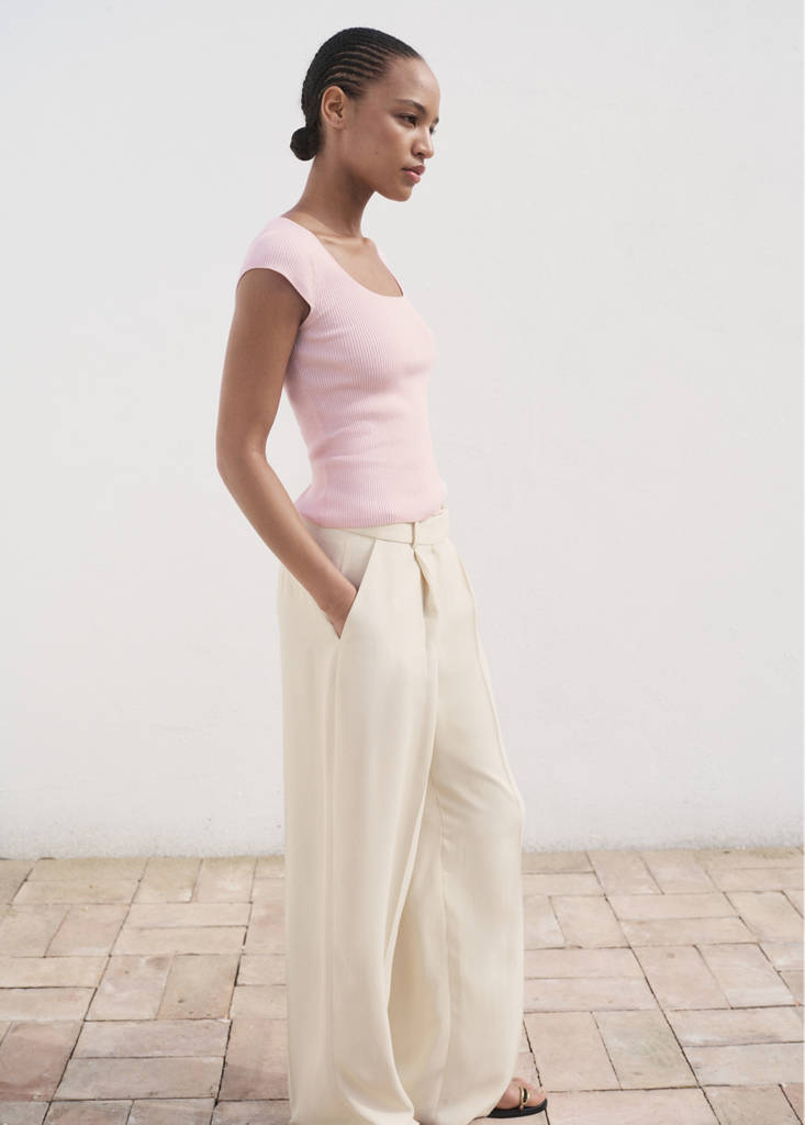 Confecionado com um tecido canelado, este corte justo apresenta um decote acentuado e manga curta, o que oferece conforto e estilo. Disponível em tamanhos Plus