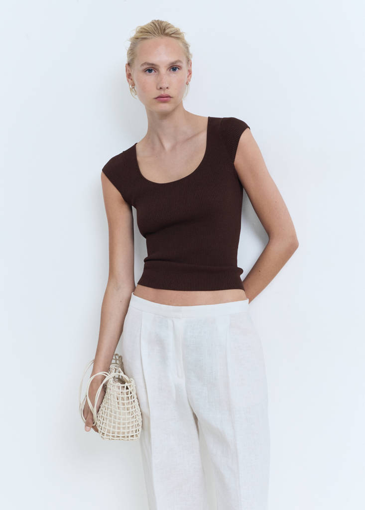 Confecionado com um tecido canelado, este corte justo apresenta um decote acentuado e manga curta, o que oferece conforto e estilo. Disponível em tamanhos Plus