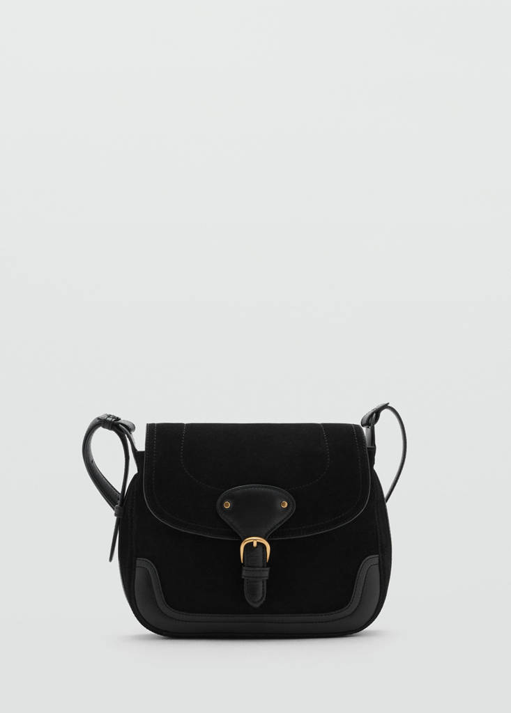 100% pele bovina. Pele croûte. Detalhe em contraste. Fecho de aba. Fecho de botão com íman. Fivela decorativa. Forro interior. Pormenor metálico. Carteira a tiracolo. Tamanho médio. Asa comprida ajustável