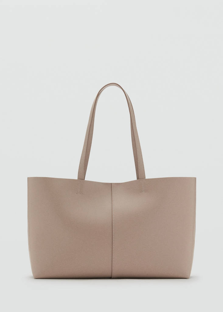 Tamanho grande. Efeito de pele. Estilo shopper. Duas alças de ombro. Fecho de botão com íman