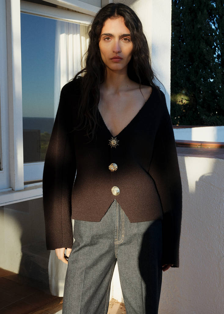 Tecido de algodão estilo cowboy denim. Rinse wash. Design longo. Design wideleg. Cintura alta. Passantes para cinto. Cinco bolsos. Fecho de correr e botão à frente. Comprimento interior de 83 cm