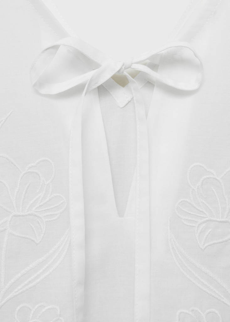 100% Algodão. Alças. Design midi. Gola em V. Laço ajustável. Bordado floral. Combina funcionalidade e elegância