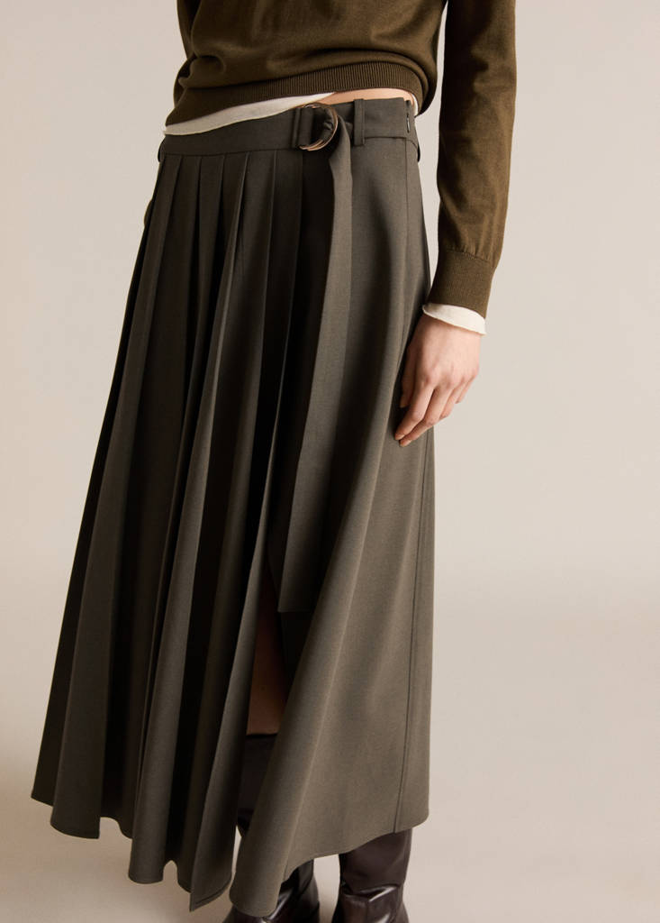 Saia com pregas e cinto