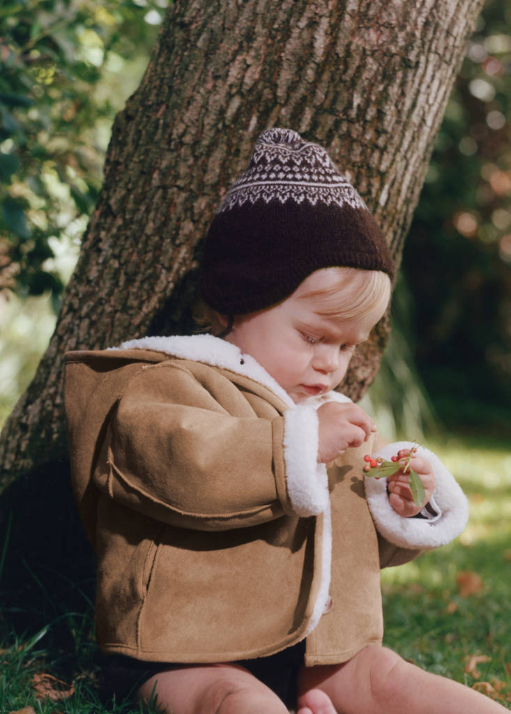 Efeito de camurça. Interior de velocino. Design reversível. Com capuz. Fecho frontal com botões. Coleção Natal