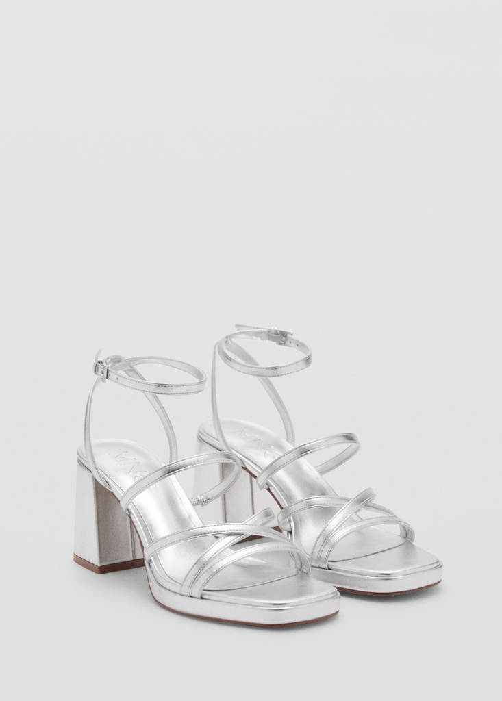 Sandália de salto com tiras metalizadas