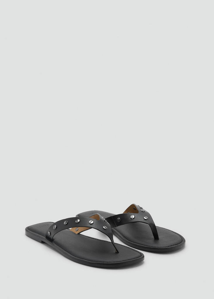 Sandália pele tachas