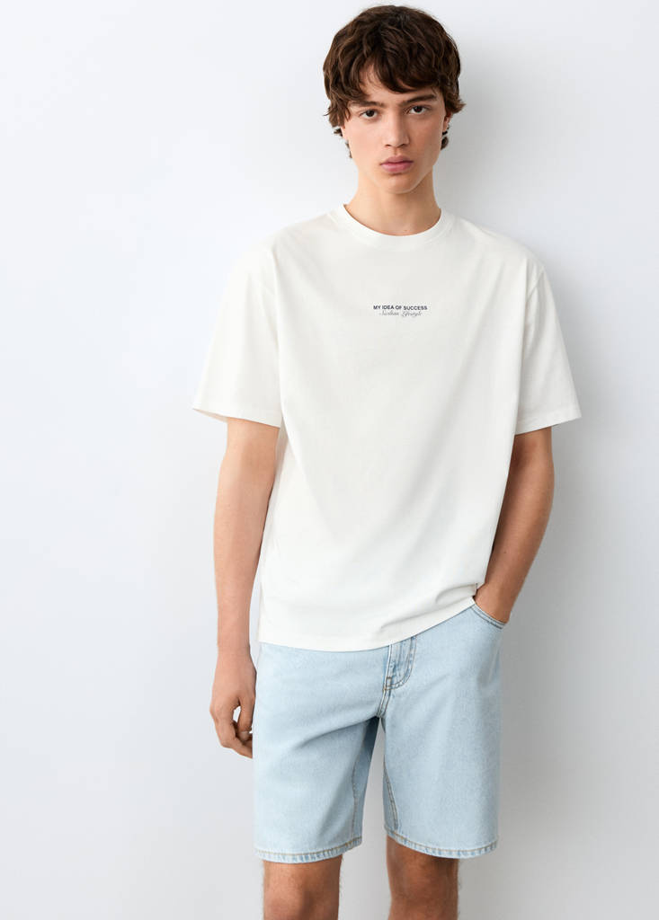 Tecido 100% algodão. Design reto. Gola redonda. Manga curta. Texto estampado no peito