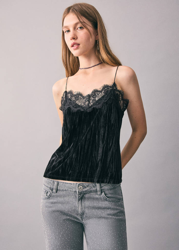 Top de veludo e rendaPreço atual [17,99 € ]17,99 €Selecione uma corPretoSelecione o seu tamanhoXXSNão disponível. Quero!XSNão disponível. Quero!SNão disponível. Quero!MNão disponível. Quero!LNão disponível. Quero!Avisem-meAdicionar a PreferidosVer lookEnvio gratuito para a lojaTecido de veludo. Design reto. Pormenor de renda. Alças finas. Coleção festa e eventos. Coleção de Festa. Coleção Natal. Modelo com brilhoPormenores, composição e cuidados a terDisponibilidade em lojaMango StylistPergunte sobre envios, devoluções e muito maisAssistant
