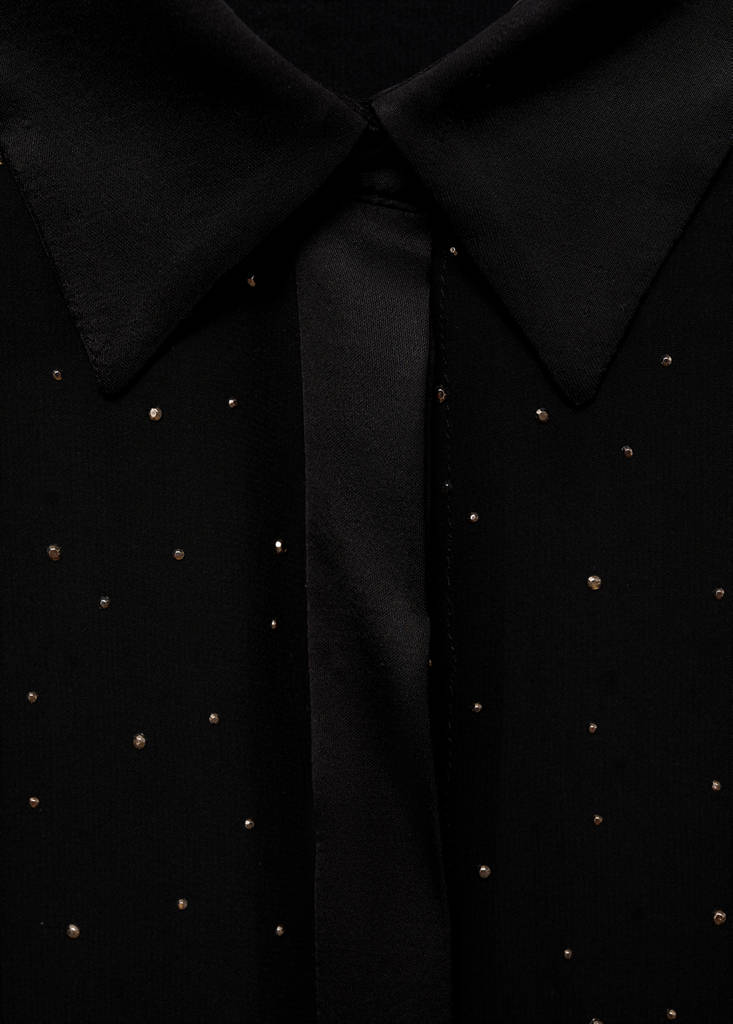 Cuello camisero. Puños en contraste. Colección fiesta, ceremonia y comunión. Tejido fluido. Tejido semitransparente. Diseño recto. Cuello en contraste. Cierre delantero de botones oculto