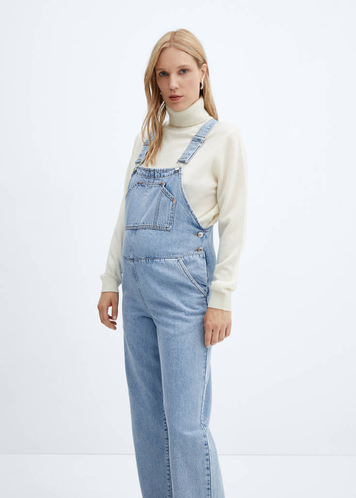 Tejido de algodón estilo tejano vaquero. Diseño recto. Diseño crop. Cuello recto. Tirantes cruzados en la espalda. Dos bolsillos de parche laterales. Dos bolsillos de parche en la parte posterior. Largo interior 68 cm. Te recomendamos comprar tu talla habitual. Proporciona comodidad y libertad de movimiento. Premamá. Bolsillo de parche en la parte delantera. Dos bolsillos laterales. Cierre de clip metálico. Largo interior 72 cm