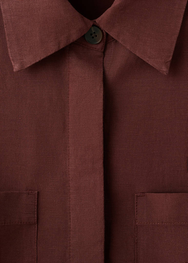 نسيج مزيج من الكتان والليوسيل. تصميم واسع. ياقة قميص. أكمام طويلة مع أساور بأزرار. جيبان رقعة في الأمام. إغلاق أمامي بأزرار. Total look