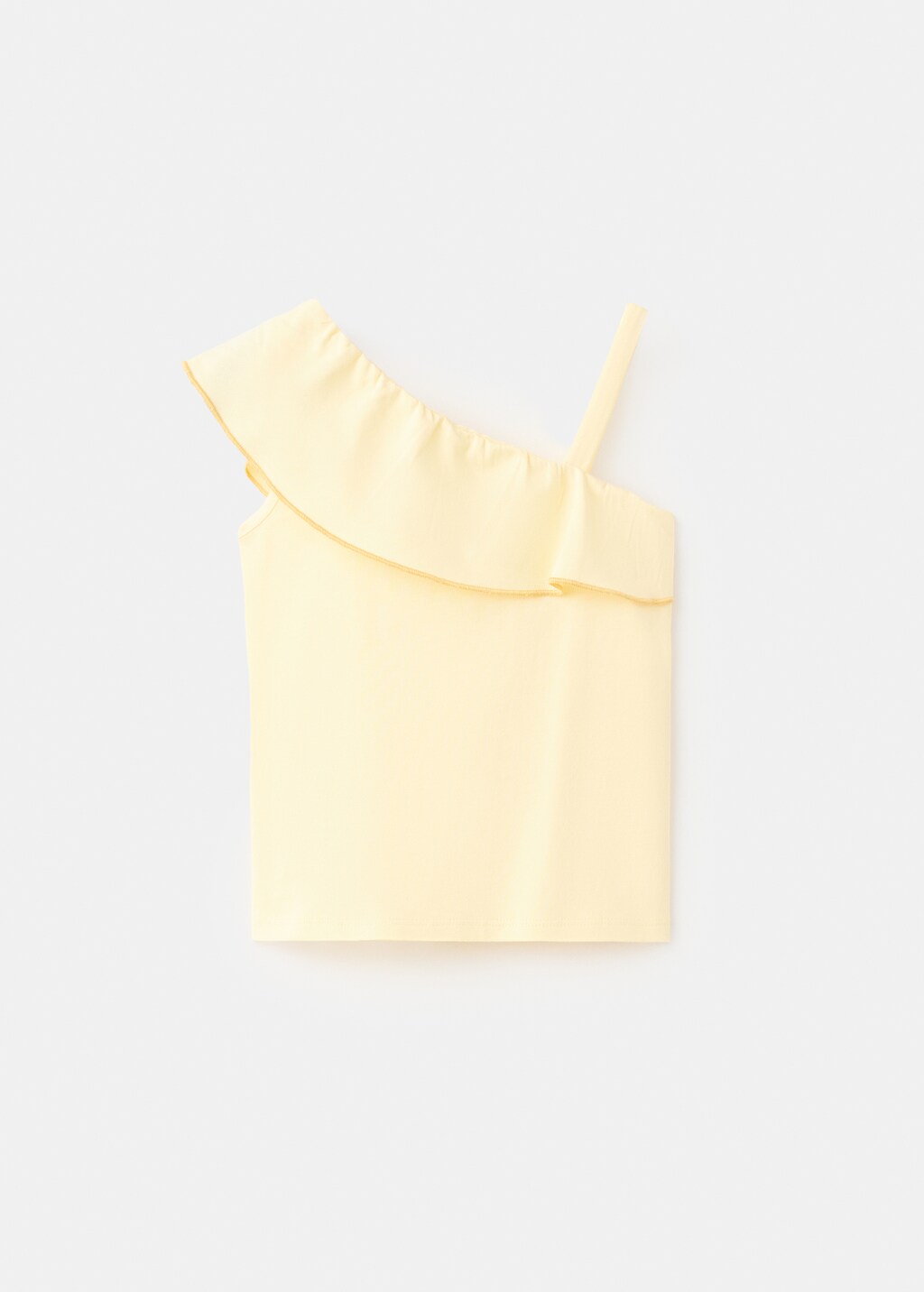 Crafted from 100% cotton fabric, this garment features a straight and asymmetrical design. It includes thin straps, a frill, and contrasting embroidered details that add a distinctive touch.