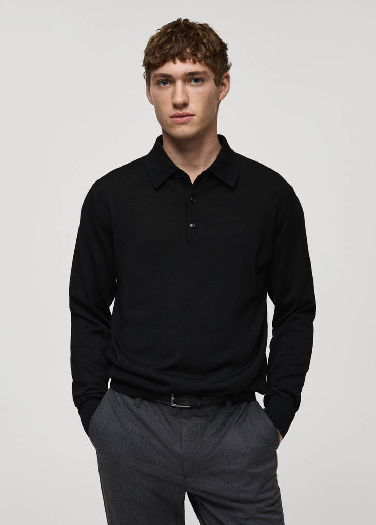 ESSENTIALS: Made to last. Regular fit. 100% merino wool. Machine washable. Fine knit fabric. Polo collar. Cable knit finish. The camel and moss green models are online exclusives. Polo-neck with button closure. Long sleeves with elastic cuffs. Straight hem. Contrast ribbed finishes on collar, sleeves and bottom hem. Medium knit fabric