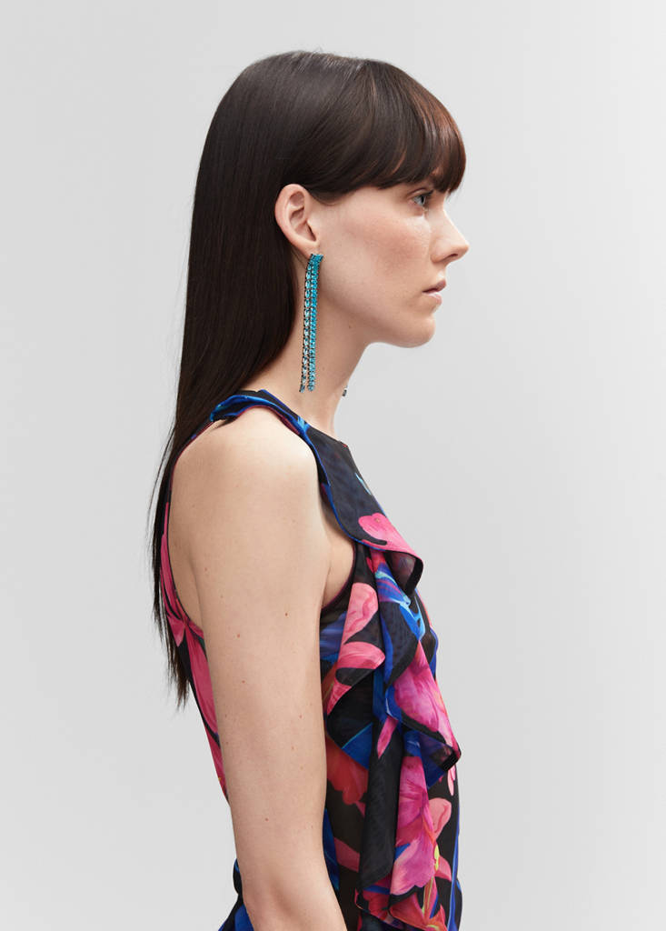 Design long. Motif en strass. Fermeture métallique à pression