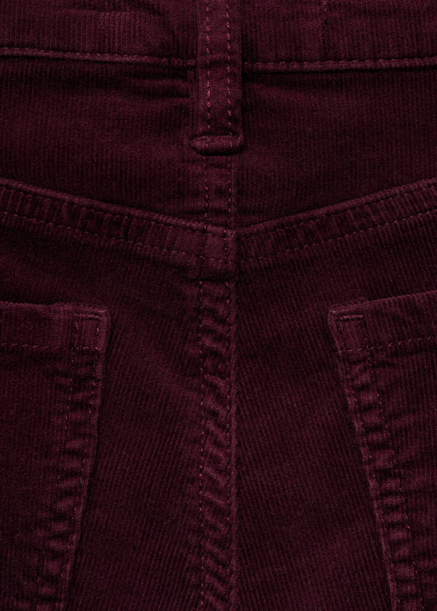 Tissu en velours côtelé. Tissu élastique. Flare. Style flare. Taille haute. Passants de ceinture. Cinq poches. Fermeture Éclair avec bouton. Longueur intérieure 65 cm. Le mannequin mesure 1,78 m et porte une taille S/36.
