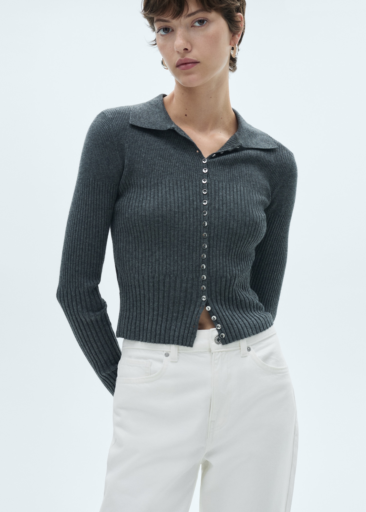 Tissu en coton style denim cowboy. Design droit. Style crop. Taille mi-haute. Passants de ceinture. Cinq poches. Fermeture éclair et bouton. Bas effiloché. Longueur intérieure 68 cm. Disponible Plus.
