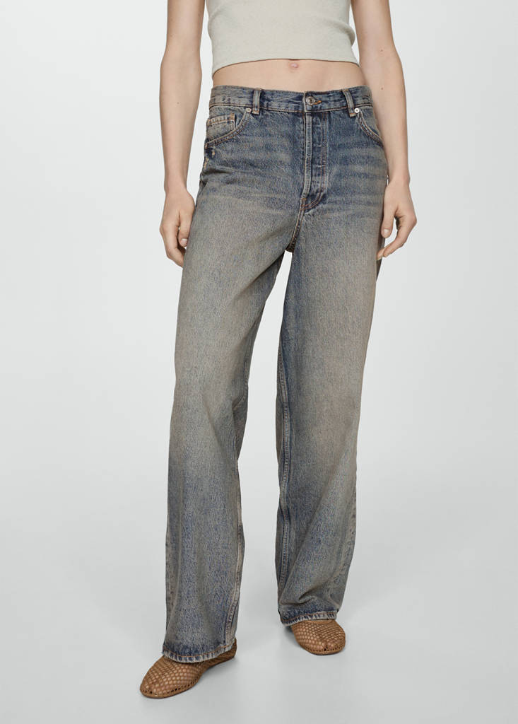 Tissu en coton de style jean. Design long. Design wideleg. Coupe loose. Taille mi-haute. Passants de ceinture. Cinq poches. Fermeture à boutons. Longueur intérieure 78,6 cm
