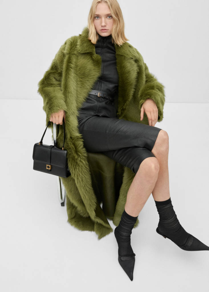 100% cuir d'agneau. Imitation fourrure. Design long. Coupe droite. Design réversible. Col à revers. Revers à encoche. Manche longue. Sans fermeture. Collection Selection