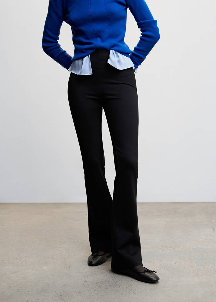 Tissu élastique. Design long. Bas de jambe évasé. Taille élastiquée. Flare. Taille mi-haute. Tissu fluide. Sans fermeture