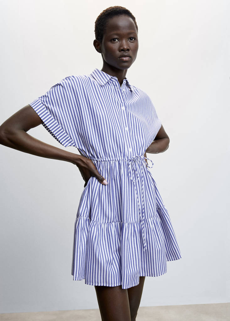 Robe rayée à volantsPrix actuel [29,99 € ]29,99 €Choisissez une couleurBleuChoisissez votre tailleXSSMLXLMesuresAjouter aux FavorisVoir le lookLivraison gratuite en boutiqueTissu fluide. Imprimé rayures. Coupe courte. Fermeture à nouer. Détails volantés. Manches courtes. Fermeture boutonnée sur le devantDétails, composition et entretienDisponibilité en boutique