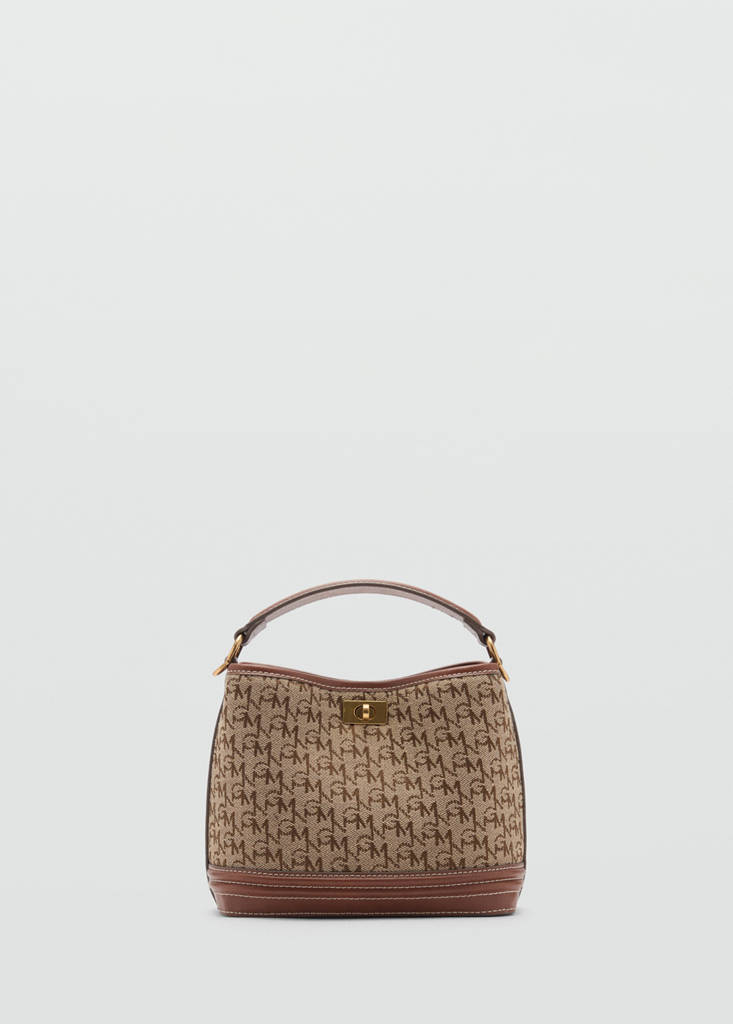 Petite taille. Motif Mangologo. Dragonne. Adjustable long handle and removable shoulder strap. Fermoir poussette. Doublure intérieure