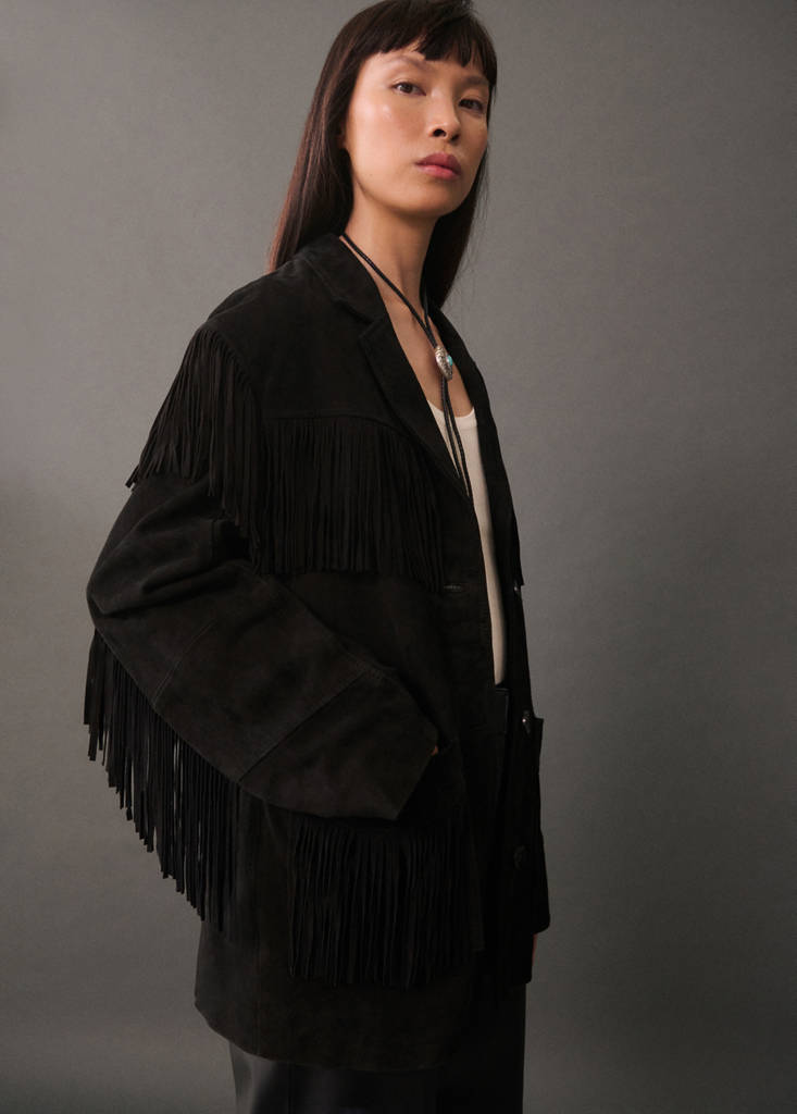 Veste 100 % cuir franges