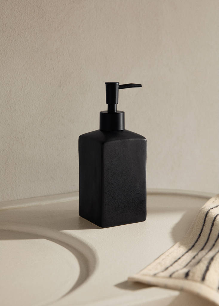 Dispenser. 100% stoneware. Single-dose. Its elegant design will add a touch of sophistication to your bathroom. High-quality and durable materials. Coordinates with more products from the collection