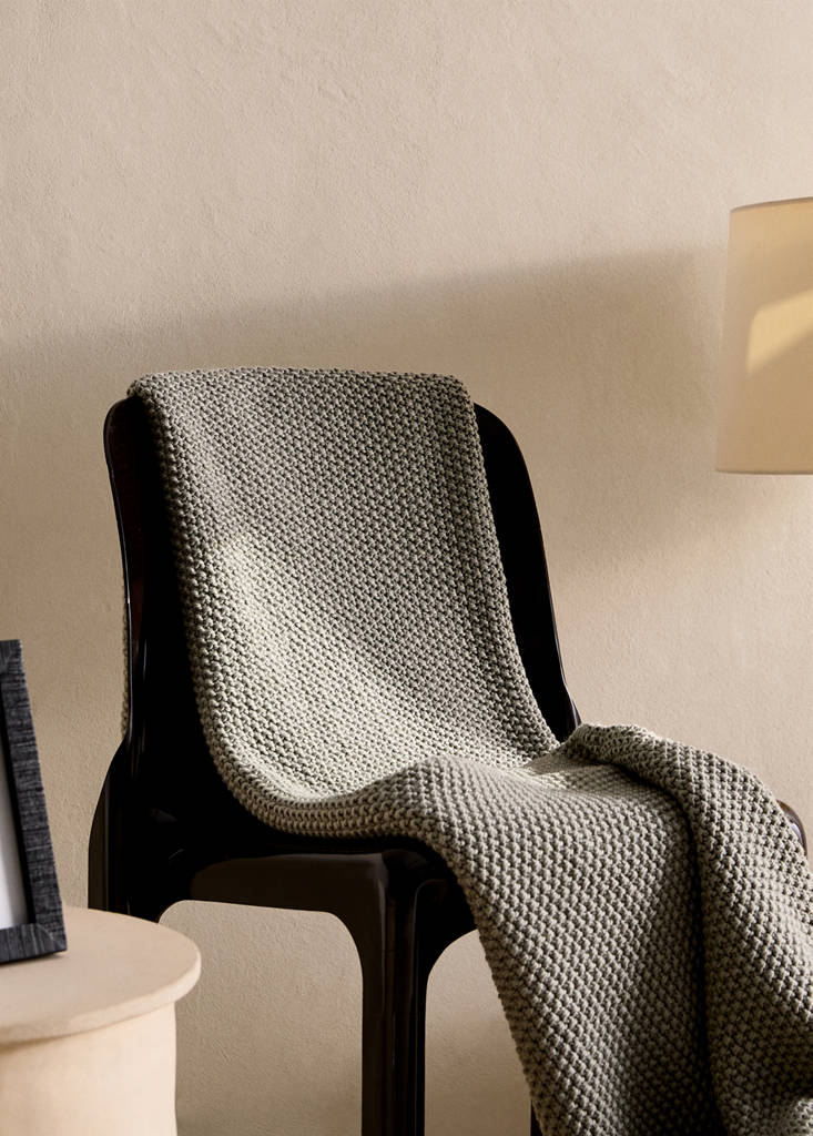Size: 130x180cm. Very open knitted fabric with soft effect. Comfortable textured blanket with volume. Ideal for cold and transitional seasons. Its unique design adds a special touch to any space, creating a cosy and pleasant atmosphere. Machine wash at a maximum of 30°C. Available in different colours