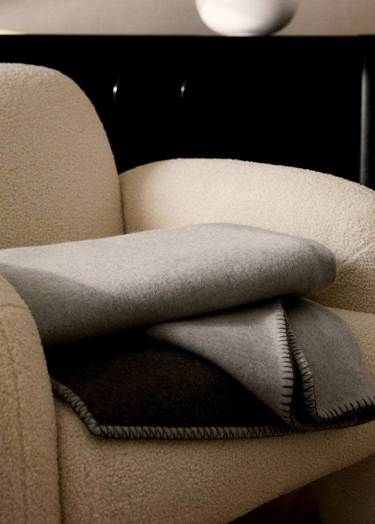 Premium quality. Size: 130x180. 100% wool. Two-tone design. High-end blanket, soft, durable, warm and lightweight. Excellent temperature control qualities. Ideal for a warm and comfortable rest in winter. Dry cleaning recommended. Available in different colours