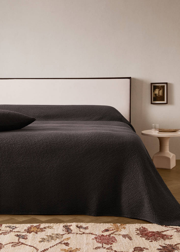 Garment-dyed waffle cotton bedspread for 130/150 cm bed