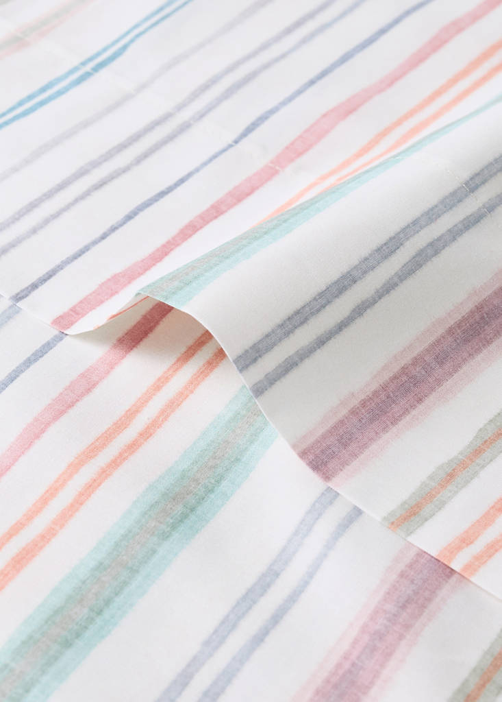 100% Cotton. Size: 210x280cm. 200-thread count percale cotton. Multi-coloured stripe design. Soft and comfortable texture to the touch. Coordinates with more products from the collection