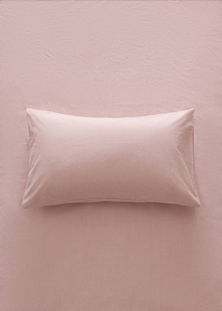 Cot bed pillowcase with fine striped yarn-dyed cotton