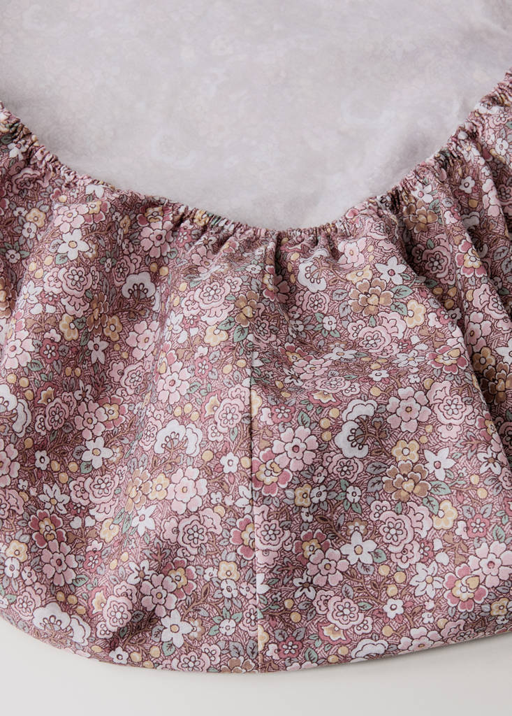 Children's percale cotton fitted sheet with small floral print for 90 cm bed