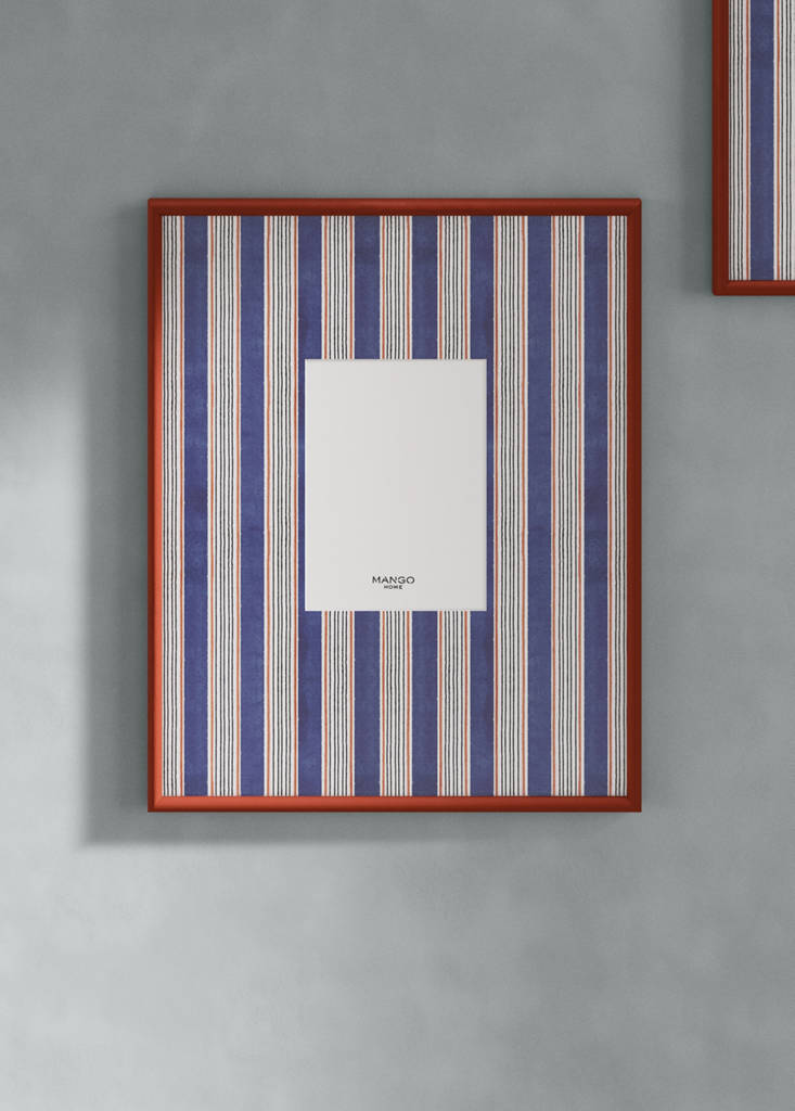 For photos of 13x18 cm. Frame size: 31x44 cm. Two-tone striped background detail. Wood material. Add a colourful and original touch to any space. Archive your photos and memories. Available in different colours
