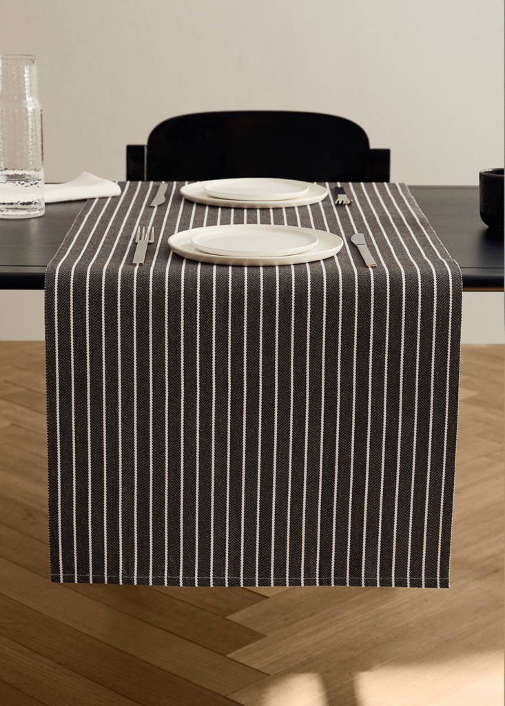 Striped cotton table runnerInitial price struck through [119,99 LEI ]119,99 LEICurrent price [67,99 LEI ]67,99 LEI-43%Select a colourBrownSelect your size50x160cmAddAdd to your wishlistSee lookFree delivery to store100% Cotton. Size: 50x160cm. Fine-stripe design. Add a modern and elegant air to your dining area. Available in two coloursDetails, composition and careStore availability