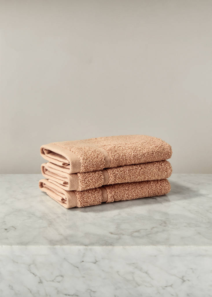 100% Cotton. Size: 30x30 cm. Weight: 500gsm. Pack of 3. Terrycloth fabric. Its modern design enhances any bathroom, combining softness and excellent absorption. Available in different colours. Coordinates with more products from the collection. Combine the different sizes