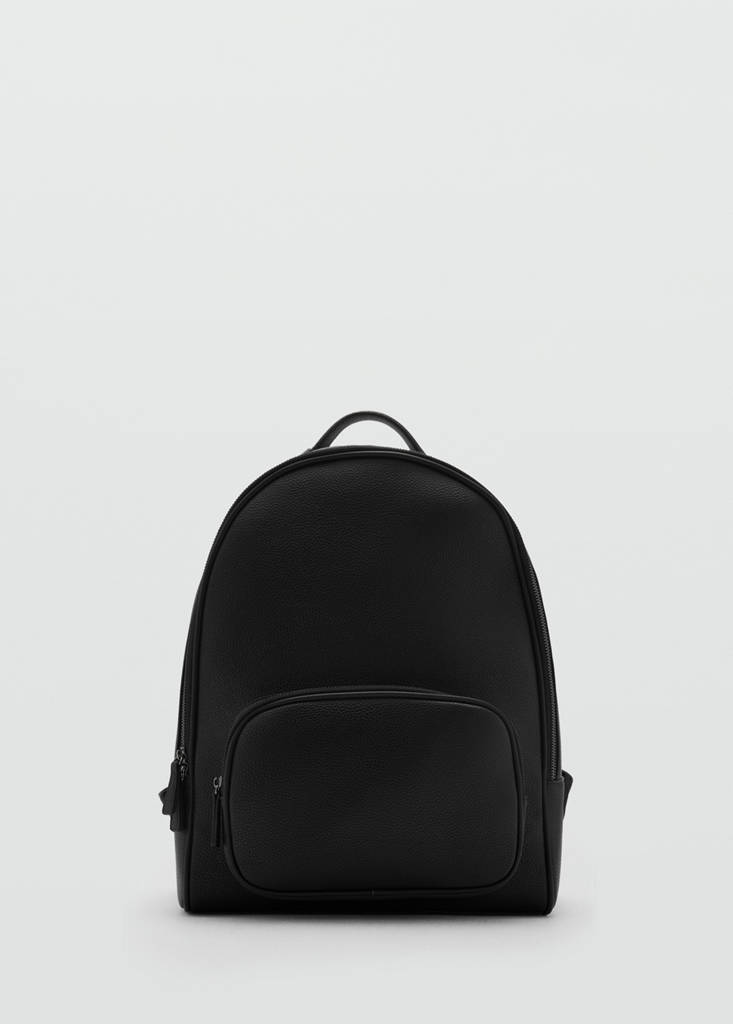 Pebbled leather effect. Adjustable shoulder straps. Handle. Breathable fabric backrest. Main compartment with zip closure. Side zip pocket. Compartment for electronic devices up to 25 cm wide