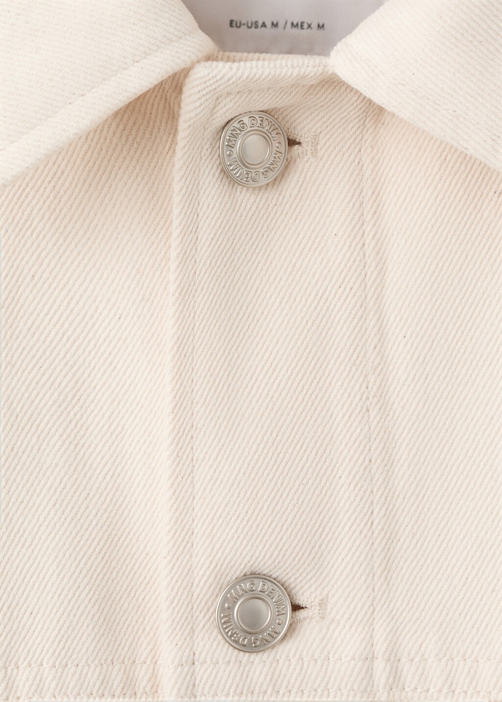 100% cotton denim-style fabric. Regular fit. Standard Length. Shirt collar. Long sleeves with buttoned cuffs. Two patch pockets on the chest. Front closure with metal buttons. Straight hem.