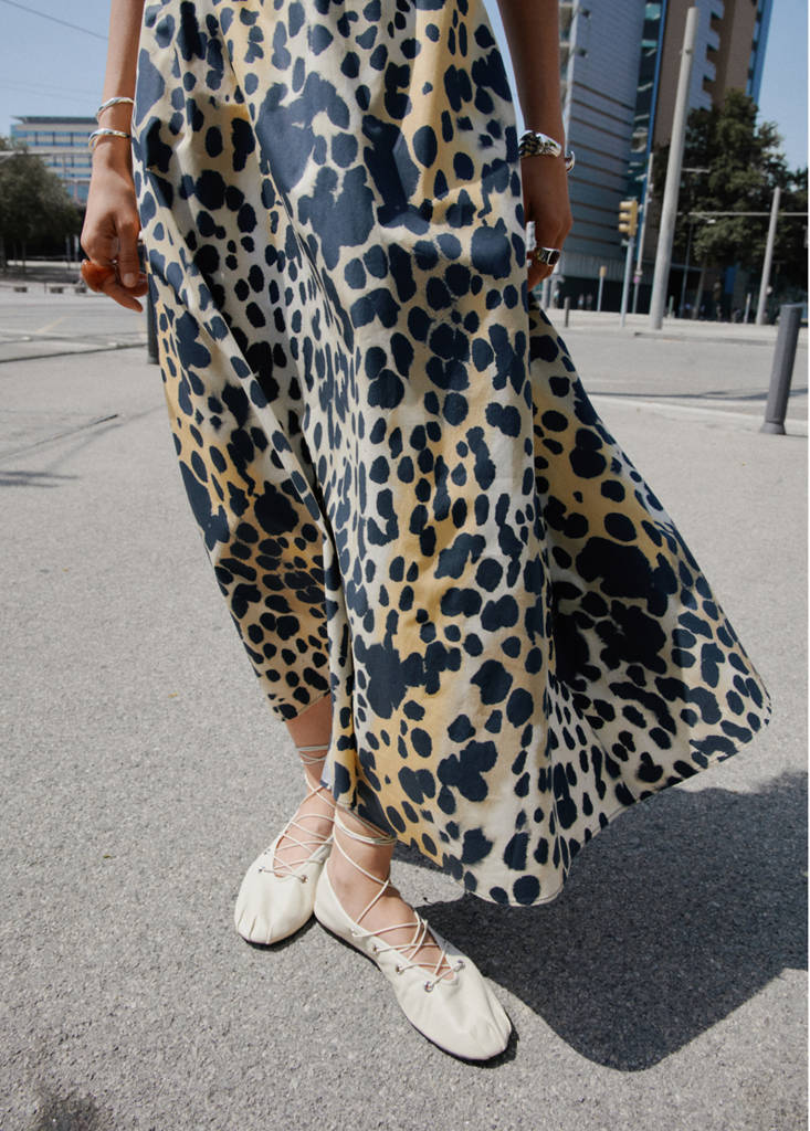 Confecționată cu țesătură din 100% bumbac, această fustă are un model midi cu croială evazată. Imprimeul leopard îi adaugă o notă distinctivă, în timp ce talia medie și sistemul de închidere cu fermoar lateral asigură confort. Combin-o cu cămașa asortată pentru a crea un total look îndrăzneț