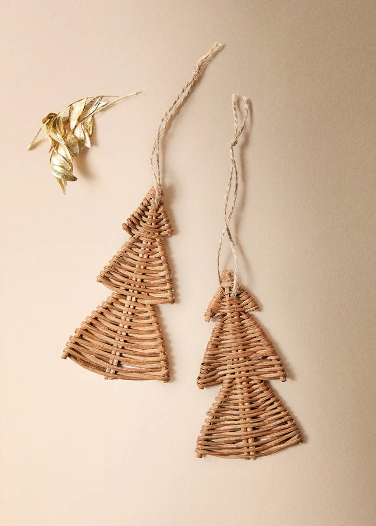 Înălțime: 12 cm. Lățime: 7 cm. 100% ratan. Set de 2. Set de brazi de Crăciun din ratan, un material natural care adaugă un aer rustic și cald decorului de Crăciun. Stilul minimalist include un finisaj artizanal cu o textură vizuală unică și fermecătoare. Combină-l cu mai multe articole. Colecția de Crăciun