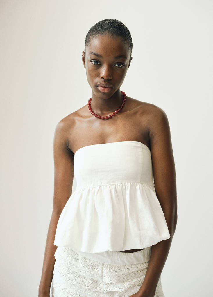 Țesătură din in. Țesătură de bumbac. Design scurt. Fără bretele. Margine bufantă. Stil balon