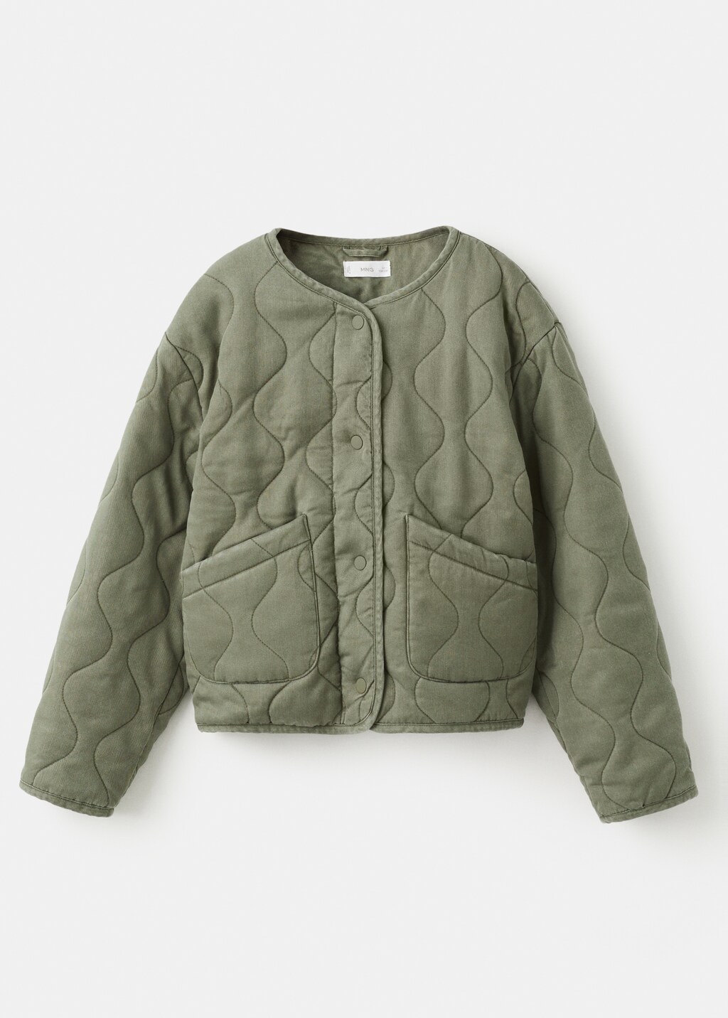 Lyocell fabric. Quilted design. Straight design. Medium design. Round neck. Long sleeve. Inner lining. Two front pockets. Flap closure with snap button. Internal label for personal data.