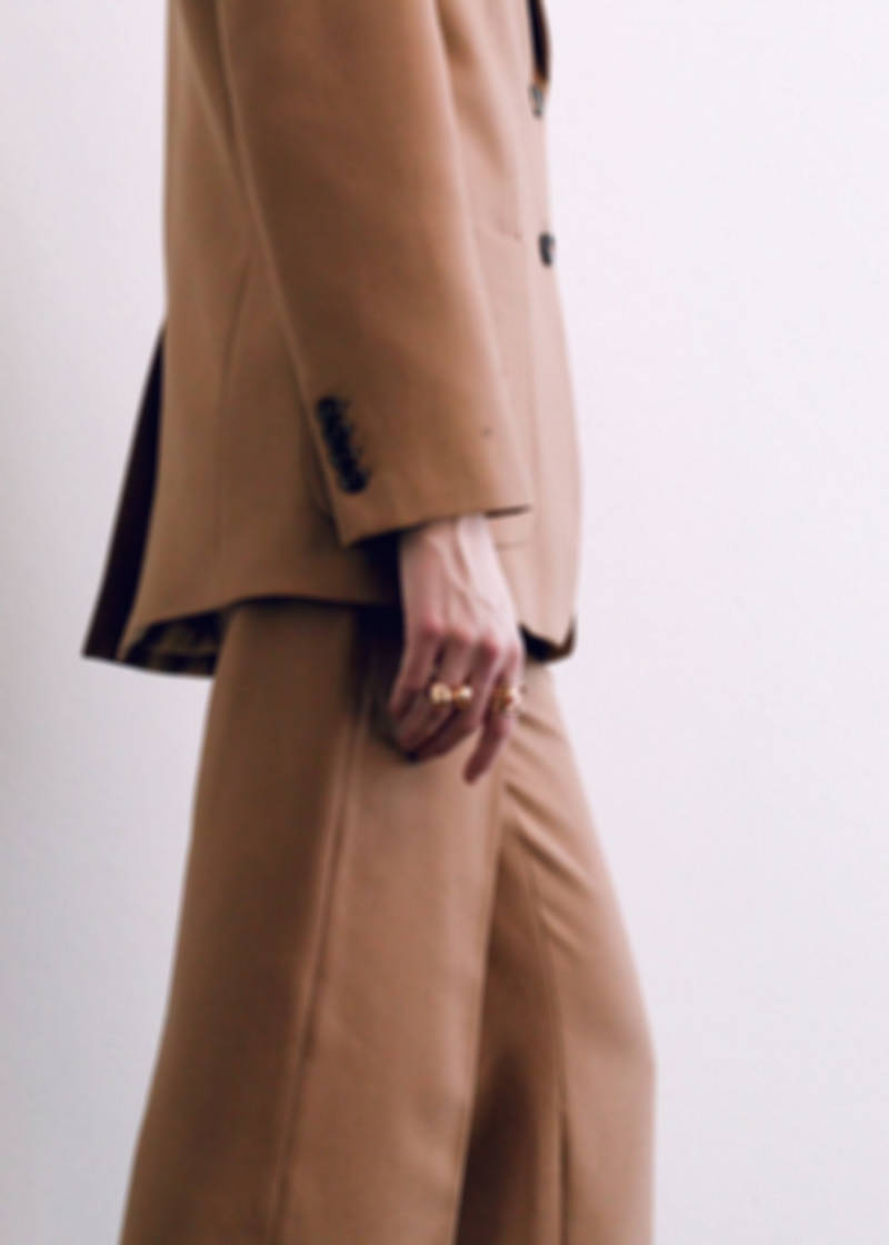 Wool mix fabric. Suit style. Straight design. Lapel-collar V-neck collar. Lapel with notch. Long sleeves with buttoned cuffs. Patch pocket on the chest. Two front patch pockets. Two-button fastening at the front. Inner lining. Total look. Available Plus