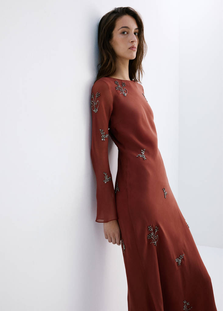 Long design. Straight design. Crystal wall lights. Round neck. Long flared sleeve. No Fastening. Inner lining. This garment is part of our party and event collection, designed to elevate your looks for special occasions