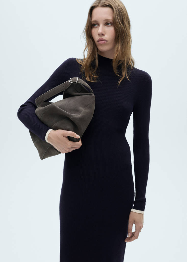 Fine knit fabric. Long design. Round neck. Long sleeves. No Fastening. Contrasting finishes. Fitted design