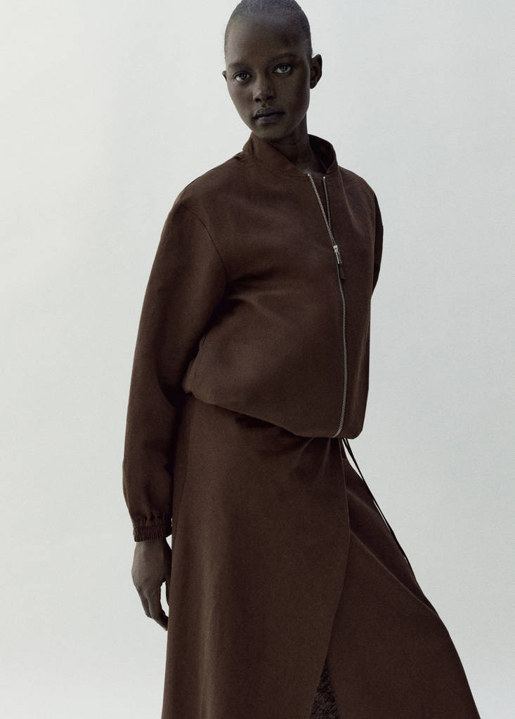 Linen mix. Bomber design. Stand-up collar. Long sleeves with elastic cuffs. Two side pockets. Zip fastening on the front section