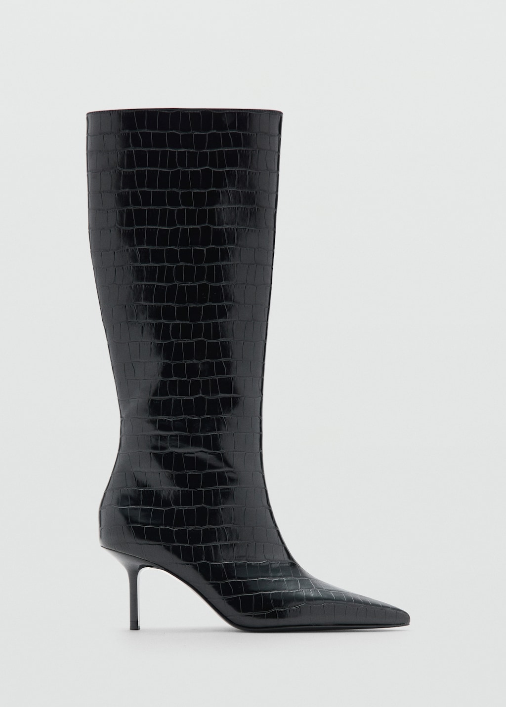 Crocodile skin. Pointed. Stiletto heel. Side zip closure. 7 cm heel.