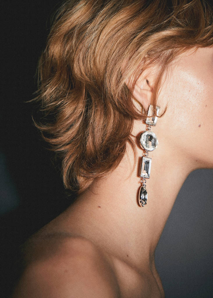 Ограненные кристаллы. Длинный дизайн. Металлическая застежка-клипса. Коллекция для праздников, церемоний и первого причастия
